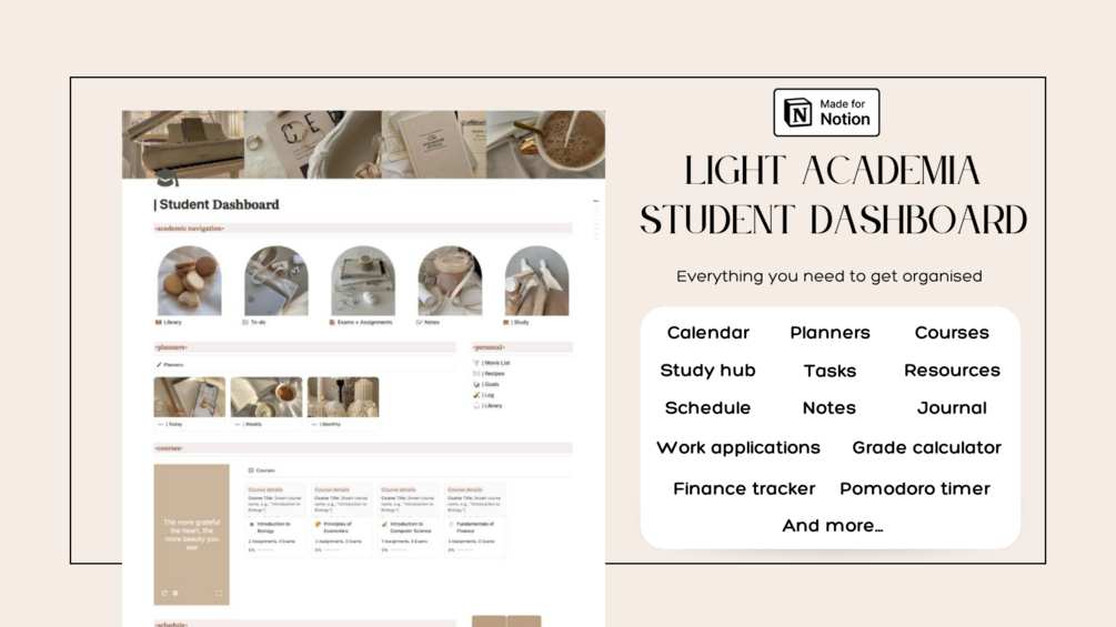 Light Academia Student Dashboard | University Planner